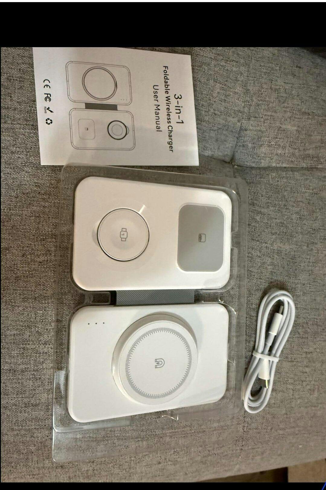 Product Name: 3 in 1 Magnetic Foldable MagSafe Wireless Charger for iPhone 16 to 12 Series Package Contains: It has 1 piece of MagSafe Wireless Charger Material: Plastic Product Dimension: 8 x 3 x 8 cm Color: As Per Availability Additional Information: 3 in 1 Magnetic Foldable MagSafe Wireless Charger for iPhone 16 to 12 Series | Compatible with AirPods 2/3/Pro | Compatible with only Apple Watch Series | Wireless Charger. Compatible with iPhone 16, iPhone 15, iPhone 14, iPhone 13, iPhone 12 and their Pro, Pro Max and Plus Versions. Not compatible with iPhone 15 Pro Max. Only Compatible with Apple Watch Series 4, 5, SE, 6, 7, 8, 9, 10, Ultra, Ultra 2 (Does not support charging for Samsung Watch Series or other brand smart watch) Weight: 200 gm